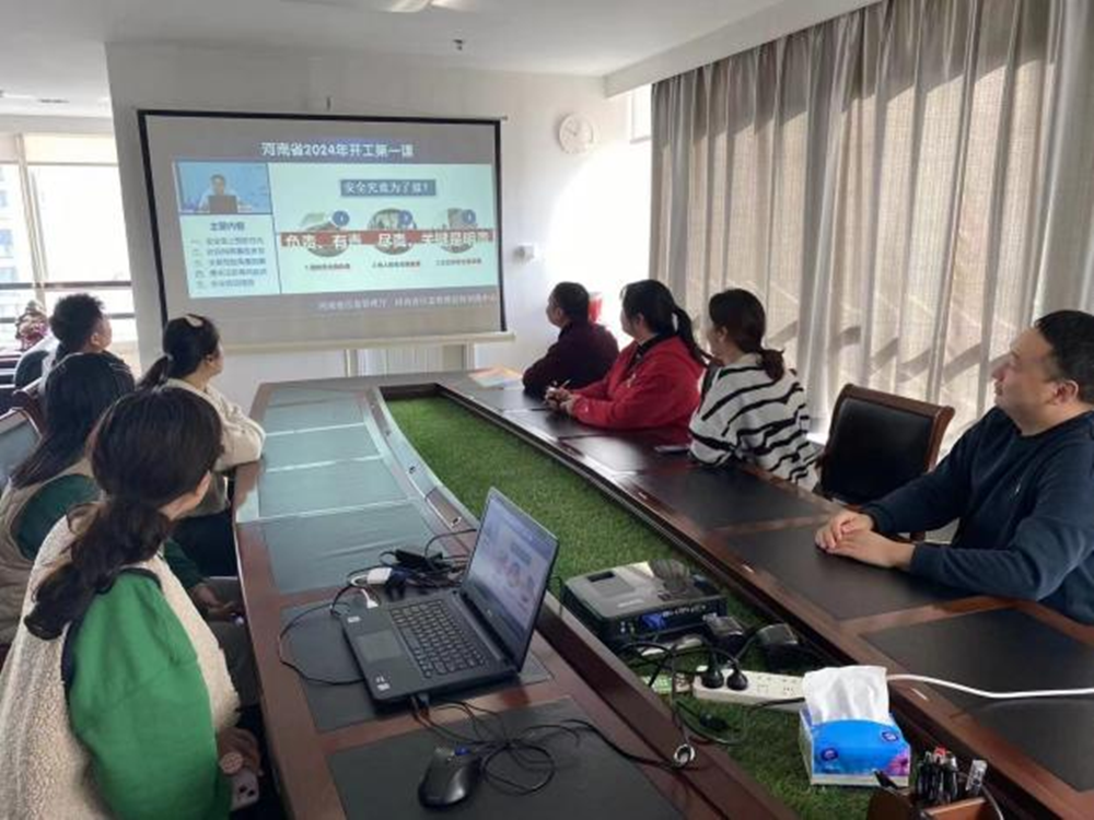 为认真贯彻习近平总书记关于安全生产重要指示精神,全面落实党中央、国务院和省委、省政府决策部署,切实做好春节后复工复产企业的安全生产工作,有效杜绝准备不充分、员工精神状态不佳、设备故障运行、安全管理不到位等问题引发的生产安全事故,确保复工复产安全, 全面恢复现场施工,保证项目施工进度,压实项目、监理、总分包管理责任。华球体育2月28日上午按照省、市安委会及城发华球统一要求,组织控股公司、项目部留守人员及施工、监理单位共计129人统一收看“河南省 2024 年开工第一课讲安全”专题讲座直播和安全生产责任在肩安全生产警示教育片。