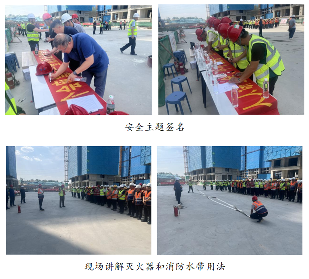 活动期间,大家积极参与安全主题签名和主题宣誓,讲解员现场讲解消防水带和灭火器的用法,解答安全生产相关知识,并开展了消防实战演练。华球公司分管安全生产的总经理助理黄志澎作重要讲话,强调了安全生产的重要性,要求各单位扎实做好今年防汛工作,并为一线工人发放防暑降温药品和安全知识手册200套。
