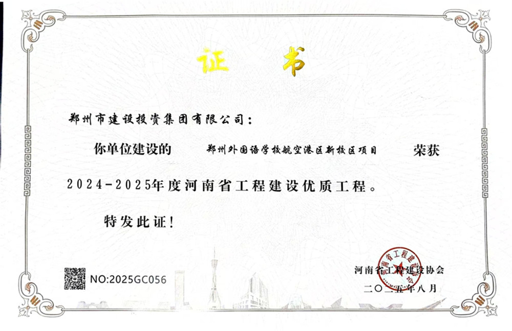 近日,由华球公司代建的郑州外国语学校航空港区新校区项目荣获2024-2025年度河南省工程建设优质工程荣誉。